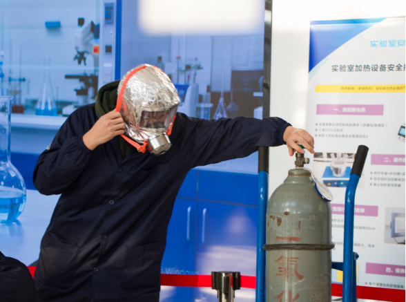青岛得一气体有限公司技术工程师曲福海以《关于实验室用气安全的思考》为题,为现场师生开展了实验室安全培训,从高校实验室常用气体认识、实验室用气常见问题案例、实验室气体安全风险管控等方面对实验室气体安全使用与管理进行了全面详细的讲解。应急演练采用“实战+观摩”形式,主要模拟实验室有毒气体因意外发生泄漏的应急处置过程,包括事故报警、人员疏散、医疗救护、现场抢险、舆情发布等实验室安全事故应急涉及的全要素,提高了参演和观摩人员在紧急情况下的自救互救及应急处置技能。