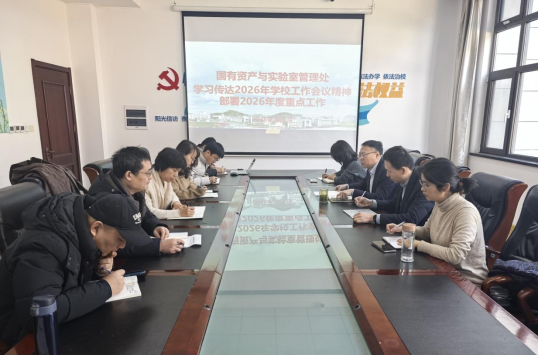 会议首先传达学习了学校2026年工作会议和2026年全面从严治党工作会议精神,对学校领导在会议上作的的工作报告、提出的工作要求作了重点解读,并结合部门职能,深入研讨了2026年度国有资产管理、招标采购、实验室安全等工作的切入点和发力点,对部门重点工作进行了安排部署。